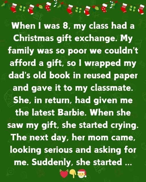My family was so poor we couldn’t afford a gift, so I wrapped one of my dad’s old books in reused gift paper and gave it to my classmate. She, in return, had given me the latest Barbie. When she saw my gift, she started crying.