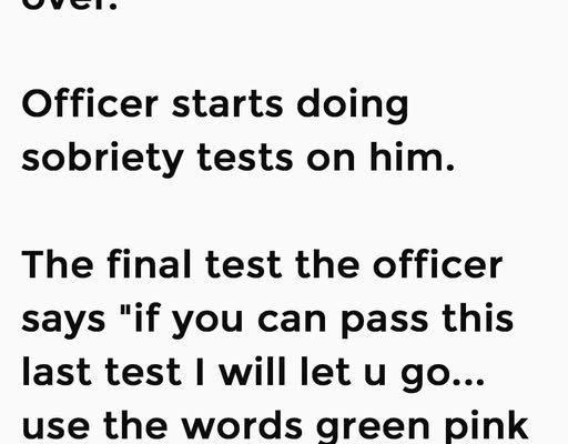 It starts with a classic “sobriety test” scenario. A drunk driver is pulled over, and the officer makes the final test a language challenge: use the words green, pink, and yellow in a sentence. The driver, completely disoriented, delivers a slurred punchline: “My phone went green and I pinked it up and said yellow.” It’s silly, clever, and exactly the kind of joke that spreads because the wordplay feels like a tiny miracle, even if it’s lowbrow.