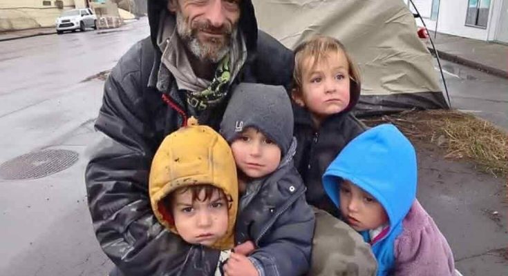 As Sean stood at the gas station, no one noticed him at first. That was nothing new. People rarely take a second glance at a man in worn boots and a faded jacket, with four children quietly waiting by a tent community. He blended into the background of everyday routines, the kind of presence society often learns to ignore.