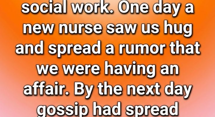 The storm began with a new nurse who happened to witness one of these hallway hugs. She saw a senior male nurse and a younger female social worker embrace and, instead of recognizing the familial bond, she imagined a scandal. She didn’t know our names, our history, or the deep roots our family had within the hospital. Politely, she smiled and moved on—but the seed of misunderstanding was planted. By the next morning, that seed had grown into a tangled web of gossip.