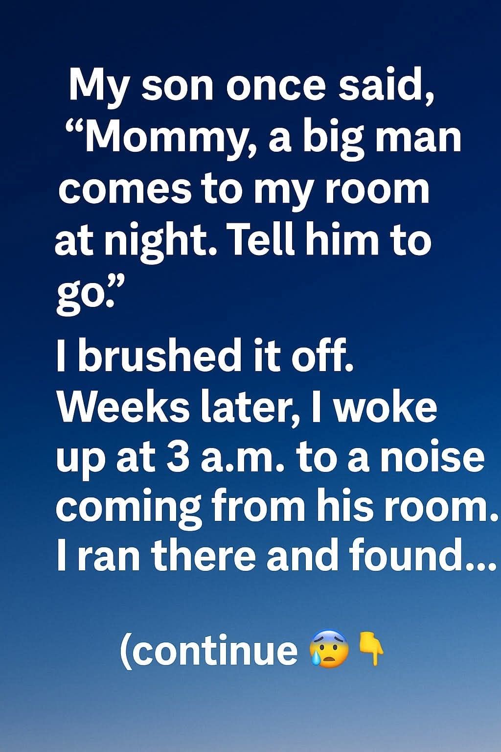 son sitting upright on his bed, talking softly into the darkness as if someone were listening. My heart raced for a moment, but when I stepped closer, I saw he wasn’t afraid—just focused. He turned to me with sleepy eyes and pointed to the rocking chair in the corner. “Mommy, the big man sits there. He sings.” There was no one in the room, but the chair was gently moving as if someone had just stood up.