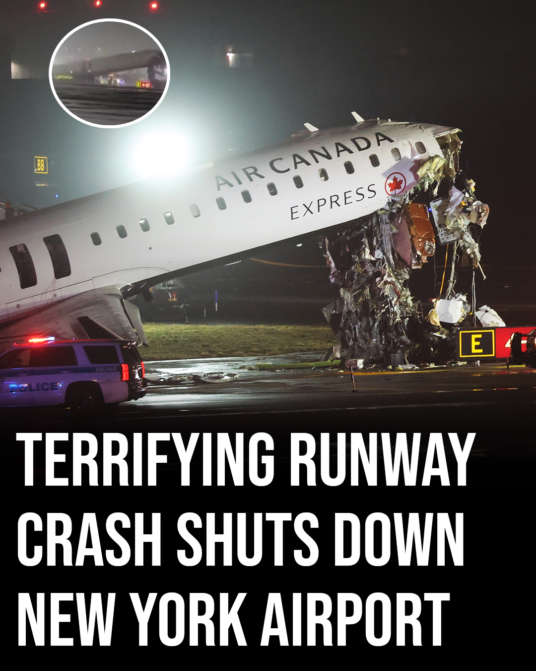 New York airport closed after collision between Air Canada plane and fire truck