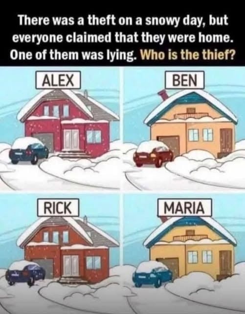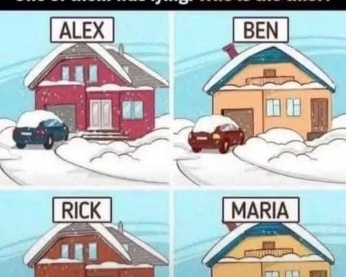 The investigation hinged on a detail most people overlook: fresh snow records every movement. While all four neighbors claimed they stayed inside, the scene outside told a different story. Alex, Rick, and Maria’s driveways were untouched, their cars resting under smooth blankets of snow. Ben’s driveway, however, betrayed him—tire tracks cut cleanly through the white, leading straight to the road and back.
