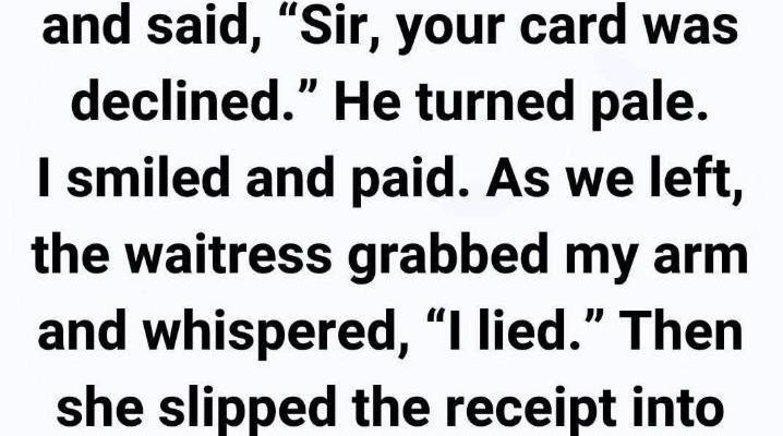 “Sir,” she murmured, leaning in slightly so her voice would not carry to the adjacent tables. “I’m so sorry, but… your card didn’t go through.”