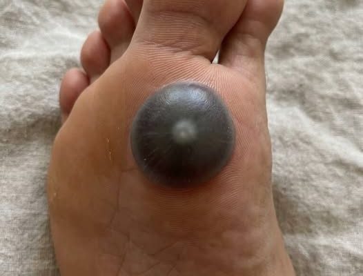 The pressure inside the blister/swelling can press on the nerves in the sole of the foot, which makes walking extremely painful. Kids often refuse to move the foot when the pressure is strong.