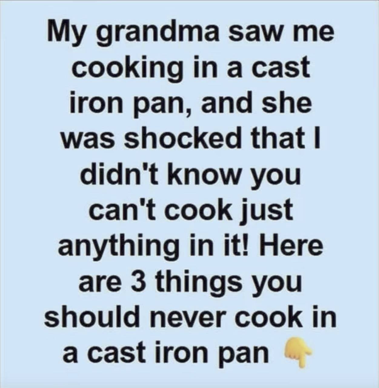 I love cooking with cast iron. Breakfast, lunch, or dinner—it’s my go-to pan. Cast iron is tough and, with proper care, it can last for decades. However, not everything belongs in it. Certain foods can damage your cookware or affect flavor. Here’s what to skip and why.
