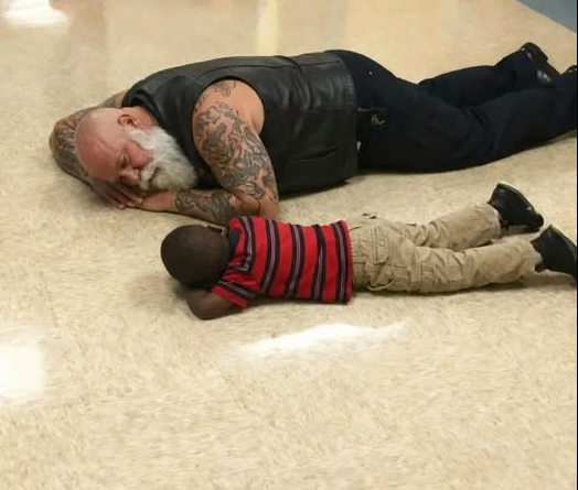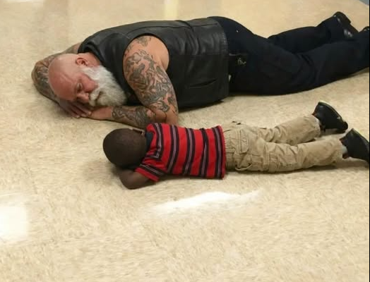 He was a big man in heavy boots and a worn leather jacket, the sort of presence that usually makes a waiting room grow more cautious, not less. He stopped at the doorway, took in the scene, and I braced myself for what usually comes next: unwanted advice, nervous stares, or the painful performance of pretending not to notice us.